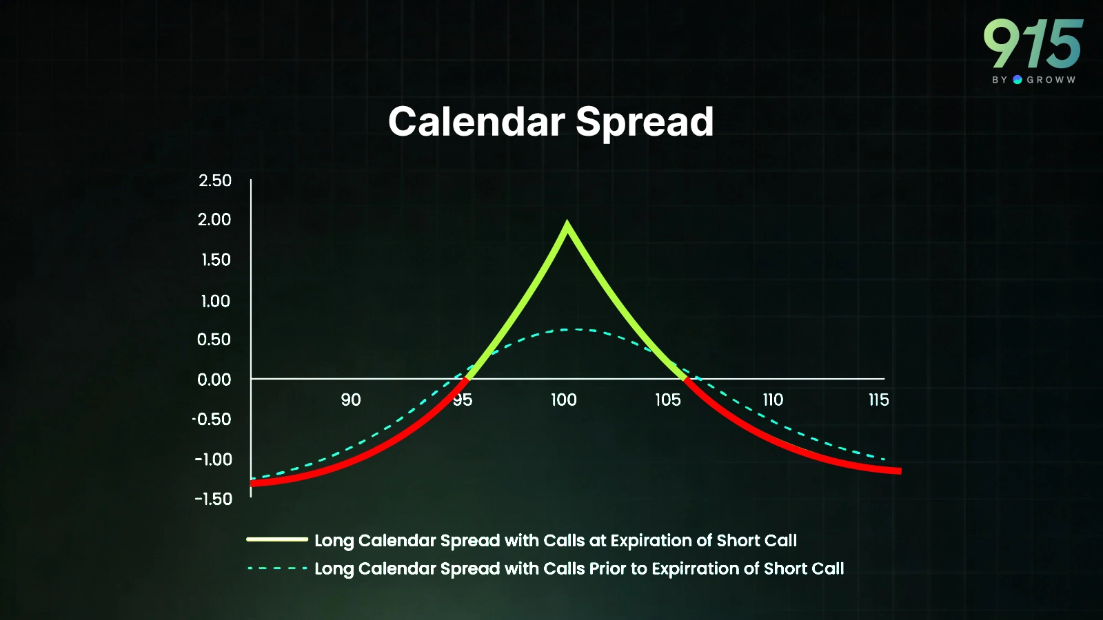 A calendar spread is one of the cleanest ways to express a relative volatility view. This option strategy allows traders to sell near-term options and buy far-term options. Usually, this is done on an ATM strike, which minimises the directional exposure. This is a pure bet on volatility, not on price. Strategy works well when the trader expects volatility to increase in the future.