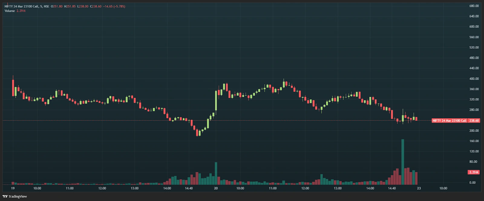 Here is the chart of the 23,100 Call option.