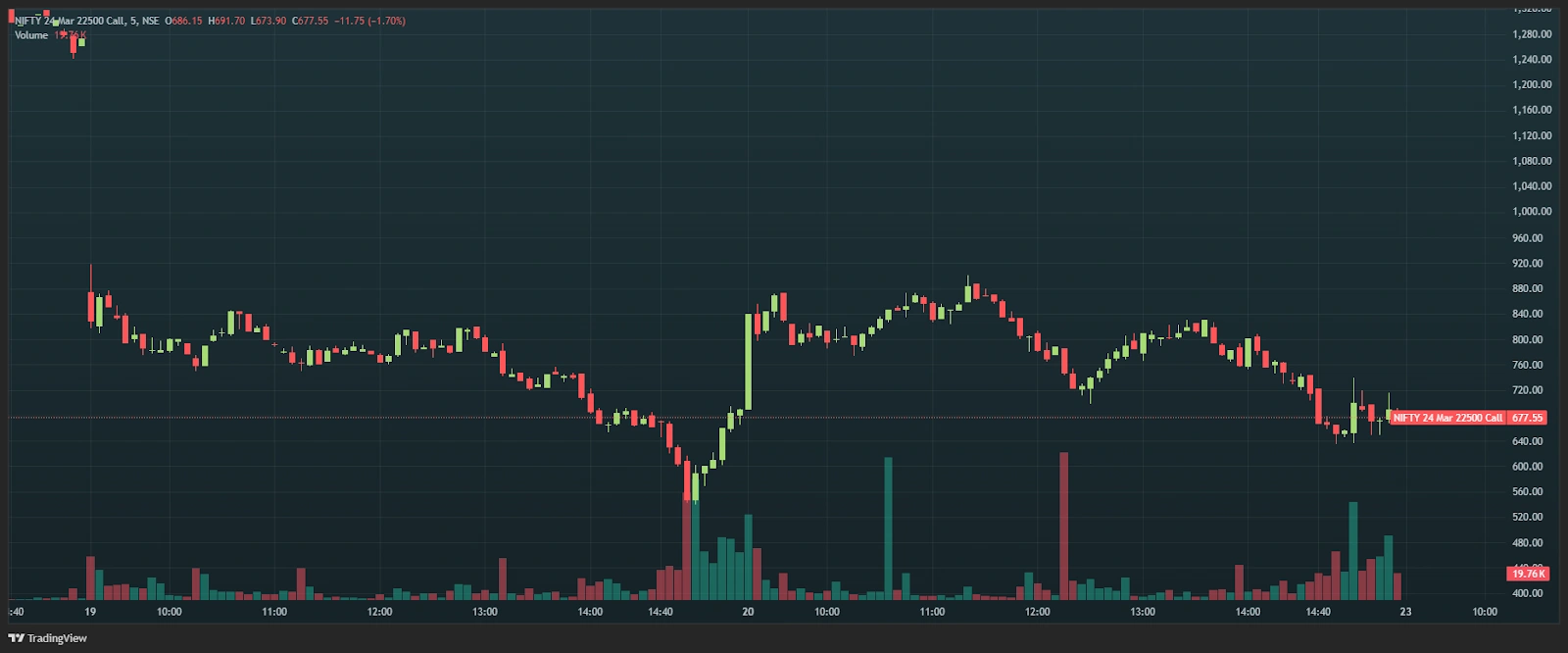 Here is the chart of the 22,500 Call option -